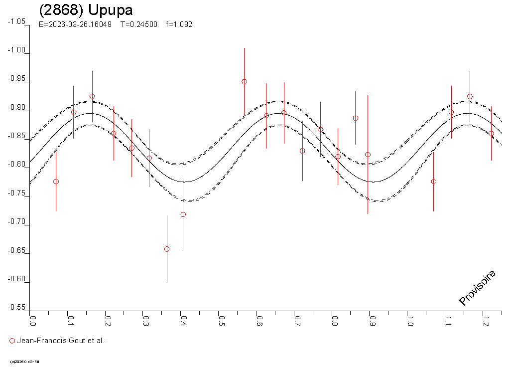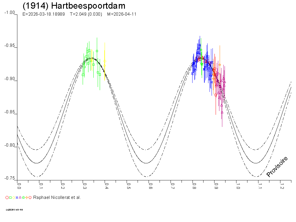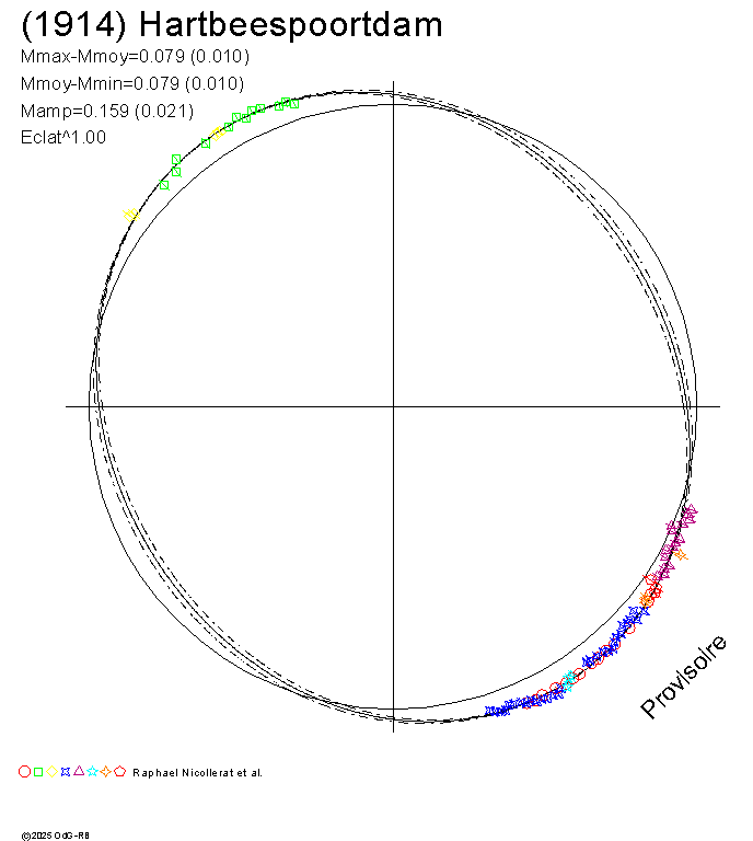 La date de péremption, M, est l'instant à partir duquel l'incertitude sur la phase correspond à un sixième de tour, pour le modèle utilisé. Passé cette date, il devient difficile de lier les nouvelles séries de mesures aux anciennes (ambigüité d'un tour). Les astéroïdes et variables à pics clairement disymétriques se «conservent» toutefois plus longtemps. M correspond également à la période idéale pour refaire une série de mesure (la visibilité n'est pas prise en compte!).