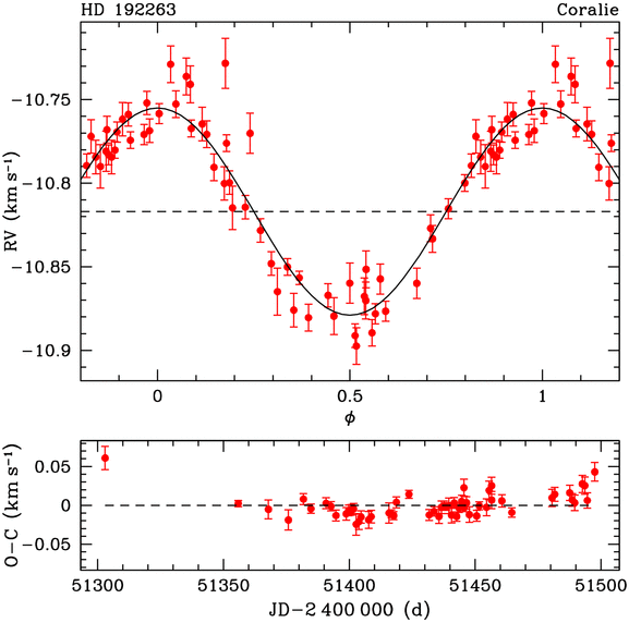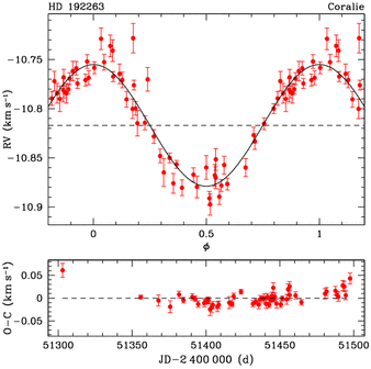 "The CORALIE survey for southern extra-solar planets III. A giant planet in orbit around HD 192263", N.C. Santos, M. Mayor, D. Naef, F. Pepe, D. Queloz, S. Udry, M. Burnet, Y. Revaz, 2000
